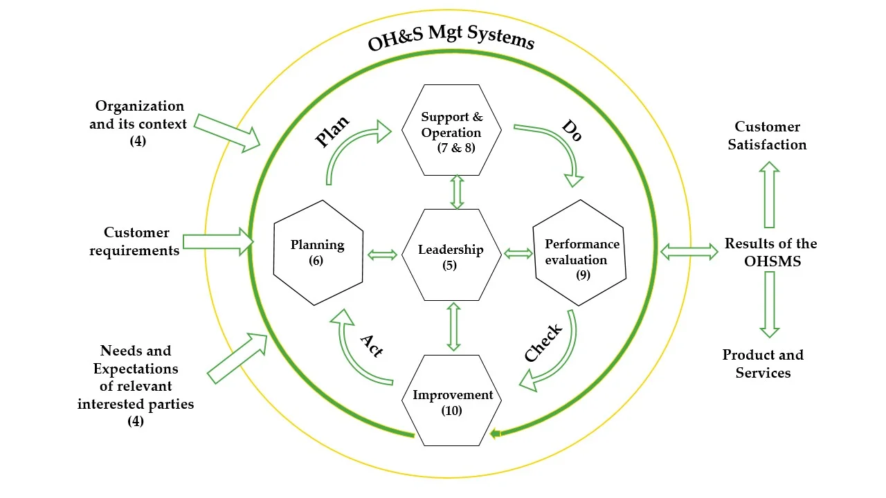 ISO 45001 uses the Plan-Do-Check-Act (PDCA) methodology to ensure systematic and continual improvement of OHS performance.